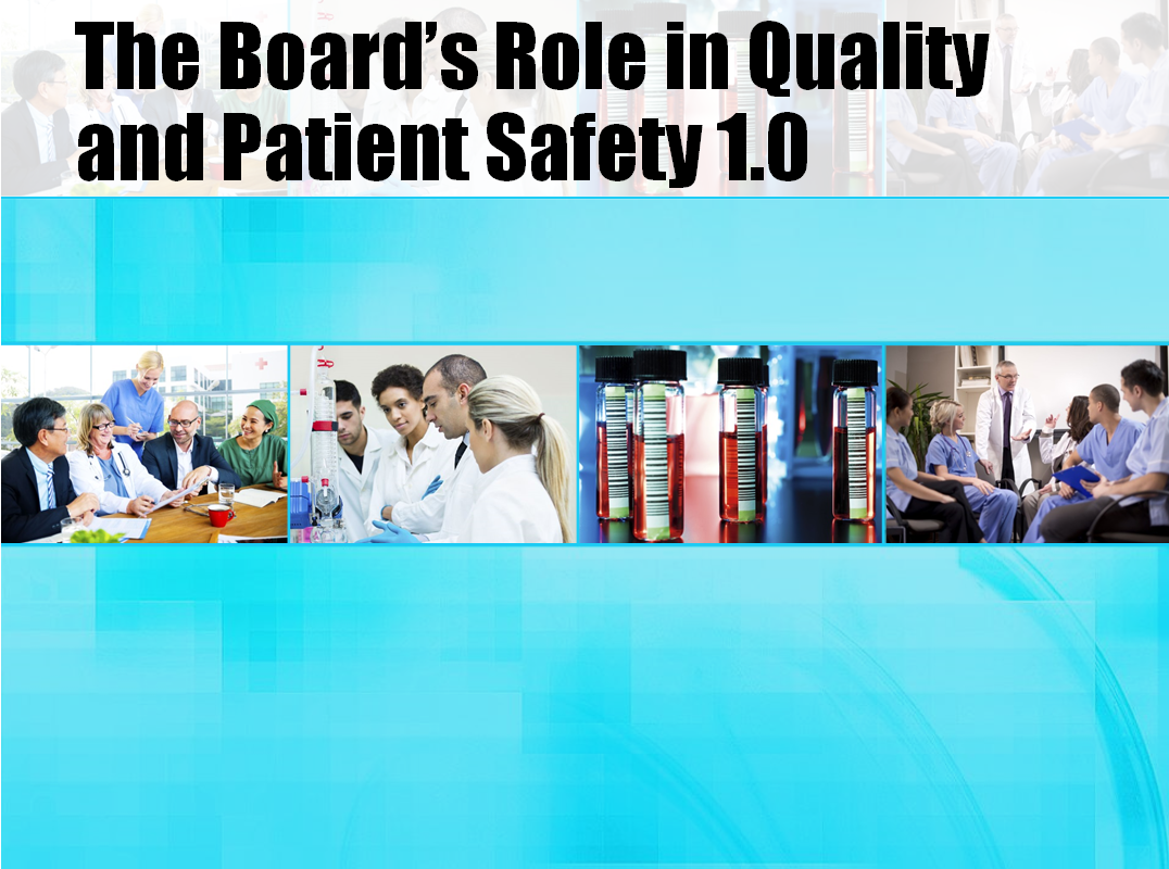 - The Board’s Role in Quality and Patient Safety: 3.0. This program focuses on investing time in board meetings to understand how to integrate quality and patient safety throughout the organization’s culture. It includes practical suggestions for making the quality connection in all board meetings, addressing adverse events, patient and family engagement in quality and patient safety, and extending the hospital’s reach beyond its physical walls.